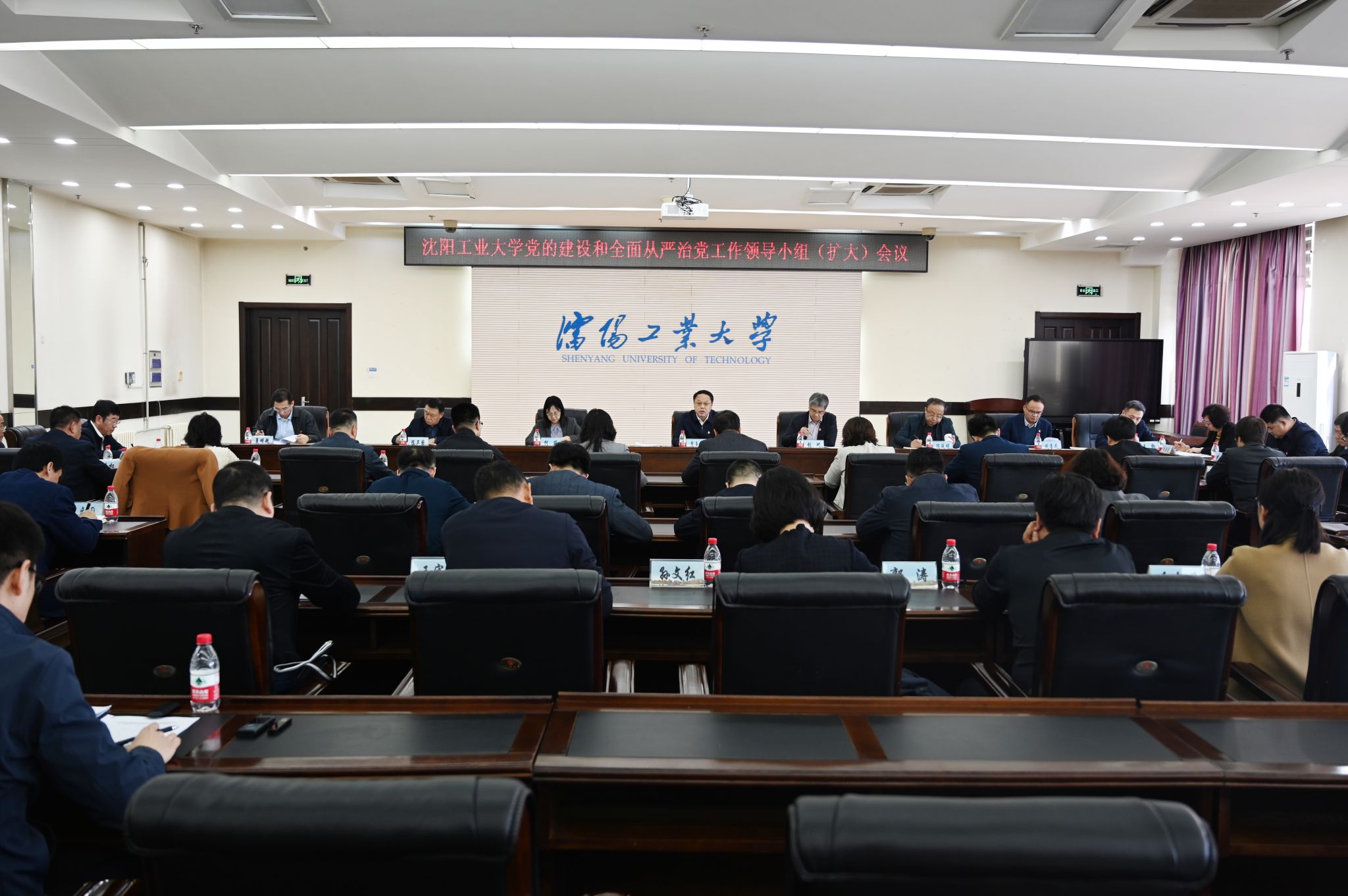 3月21日下午,学校在校部五楼会议室召开党的建设和全面从严治党工作领导小组(扩大)会议,传达学习习近平总书记关于深入贯彻中央八项规定精神学习教育的重要讲话和重要指示精神,中央党的建设工作领导小组会议和中共中央办公厅《关于在全党开展深入贯彻中央八项规定精神学习教育的通知》精神及省委相关会议精神,研究部署学校深入贯彻中央八项规定精神学习教育工作。党委书记贾玉明主持会议并讲话,学校党的建设和全面从严治党工作领导小组成员和成员单位负责人,各二级单位党组织书记参加会议。