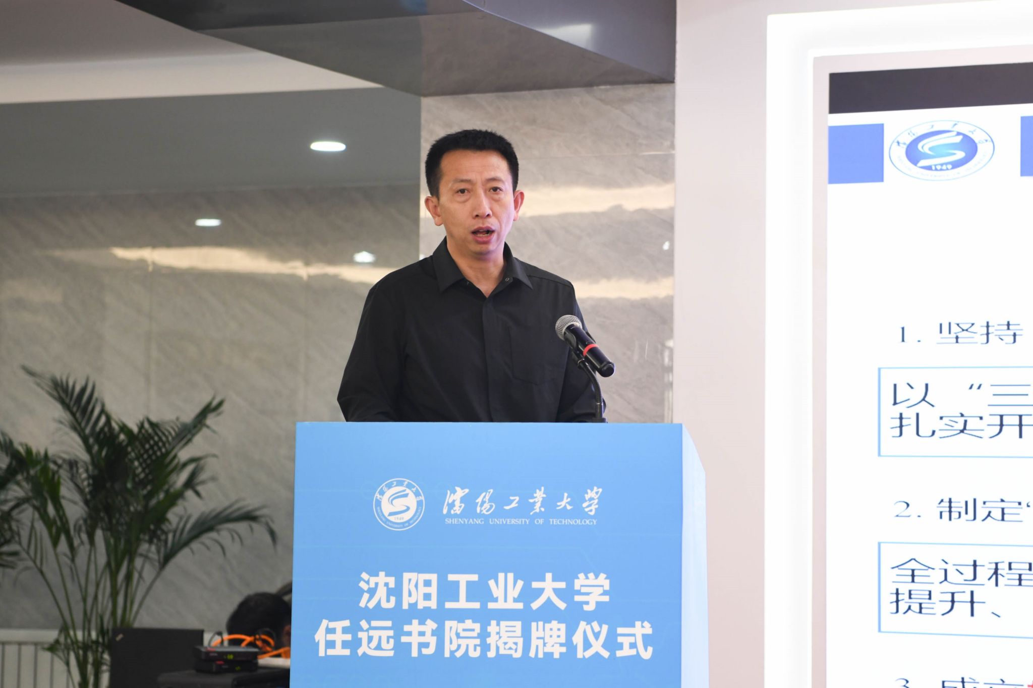 仪式伊始,校党委书记贾玉明致辞。他对任远书院的成立表示祝贺,对唐院士心系学校发展、亲自题写院名并亲临揭牌仪式现场致以崇高的敬意。与此同时,贾玉明对任远书院的学子们提出五点希望,概括为“五个心”。一是强化报国的初心。要有远大的志向,坚定追求卓越的信念,将个人理想与中华民族伟大复兴紧密结合,与辽宁全面振兴有机融合。二是强化攻坚的匠心。要坚持“卓理精工,科魂匠心”的院训精神,以对学问和师道的敬畏之心,在交叉学科和产教融合模式下,做到精益求精,止于至善。三是强化求索的恒心。要立足于岗位,培养兴趣,勤学苦练,不断打磨,“板凳坐得十年冷”,不断攀登直至实现目标。四是强化切磋的虚心。要互相学习,取长补短,见贤思齐,不耻下问,虚心向师长请教,努力在实践中成长。五是强化奉献的仁心。要努力涵养自身道德品质和综合素养,与人为善,关爱他人,注重诚信,乐于奉献,努力为强国建设、辽宁振兴作出贡献。