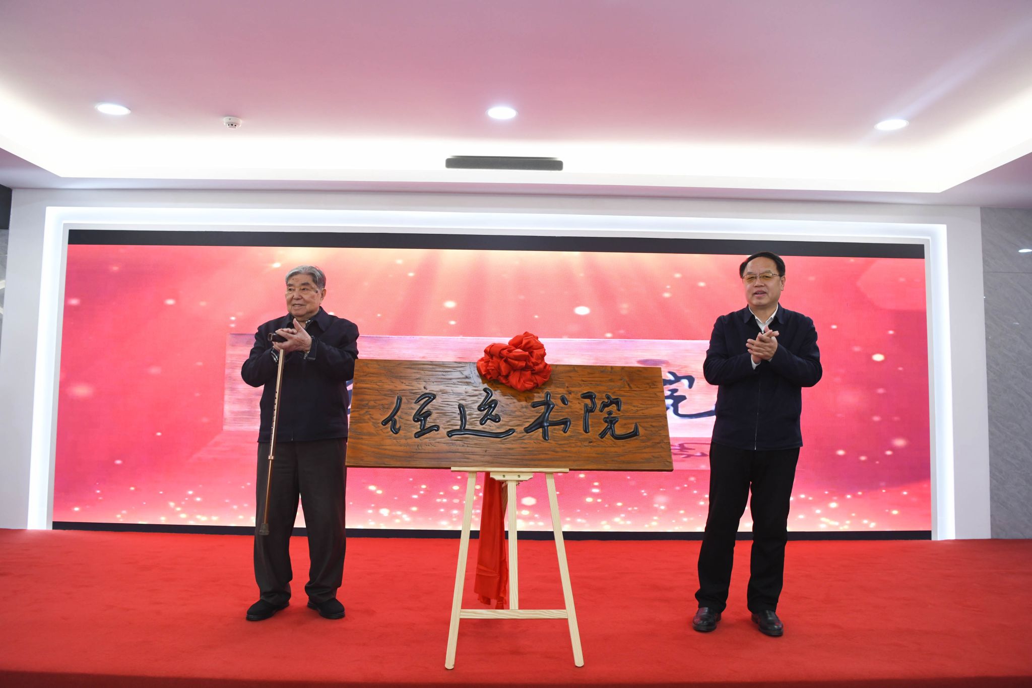 随后,唐任远院士和贾玉明书记共同为任远书学院揭牌。这一时刻,全场气氛达到高潮,现场师生共同见证了这一具有历史意义的瞬间。