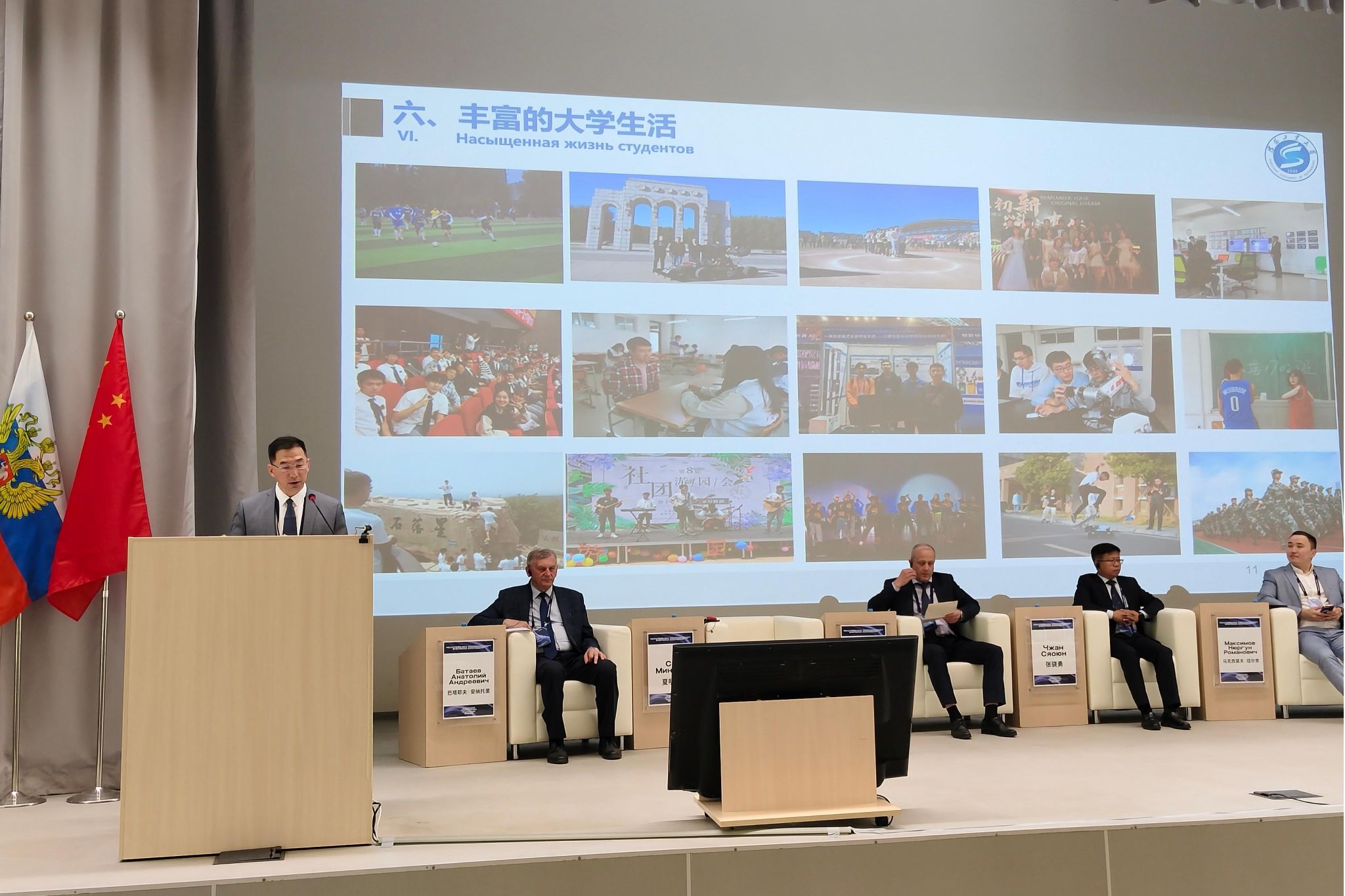 本届年会以“未来教育的空间:技术、能力、创新”为主题,吸引了俄罗斯教育部、中国驻俄罗斯大使馆、中俄两国多所顶尖工科院校的领导、专家学者及教育界代表参会。会上,夏明超在“大学与城市融合发展——中俄科教领域的新机遇与新挑战”论坛上,围绕“ld乐动网页版在线登录教育国际化探索与实践”主题,分享我校在构建一流人才教育体系、创新ld乐动网页版在线登录模式、开放办学,以及推进教育国际化、国际化ld乐动网页版在线登录等方面的经验,报告引发中俄与会嘉宾的高度关注。