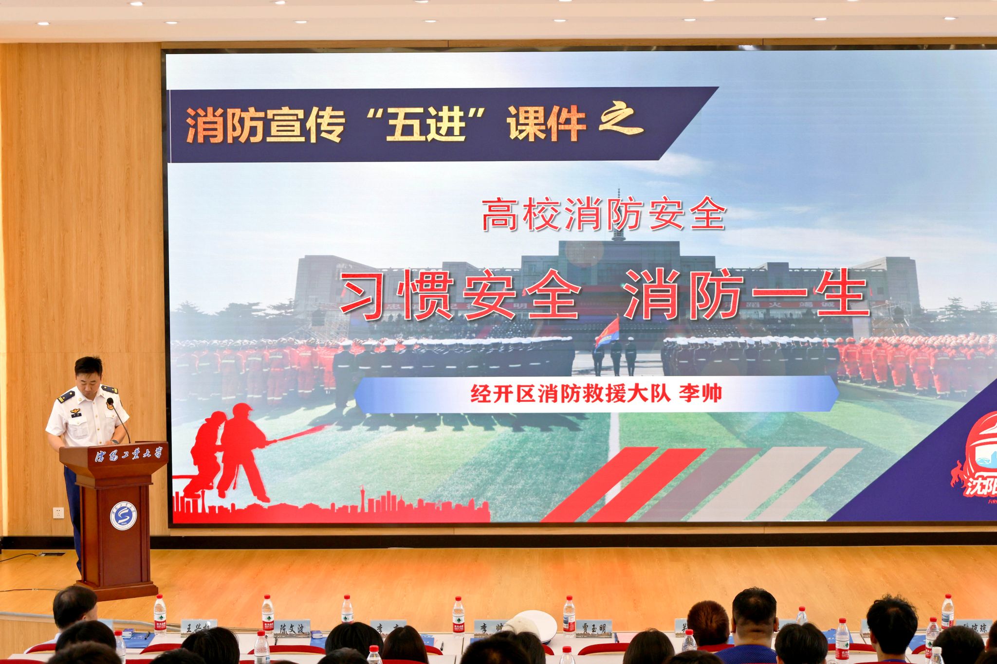 授旗仪式后,为提升服务大队的专业能力,开发区消防大队李帅为蓝盾平安校园服务大队及各学院中队与会队员开展了专题业务培训,通过针对性的消防知识与应急处置讲解,为这支校园平安建设年轻队伍赋能强基。