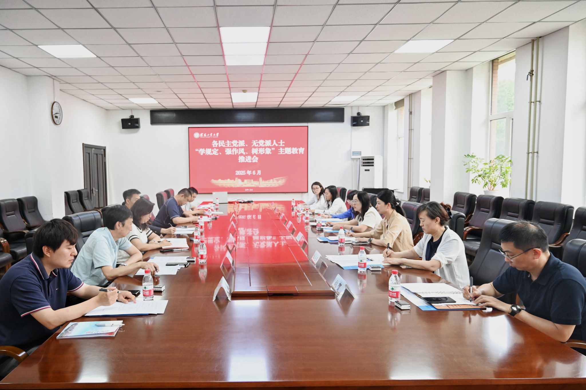 6月19日下午,学校各民主党派、无党派人士“学规定、强作风、树形象”主题教育推进会在校部116会议室召开。校党委副书记柯丽出席会议并讲话,各民主党派基层组织负责人、校知联会负责人、民主党派和无党派人士代表参加会议。会议由党委统战部部长郭玲主持。