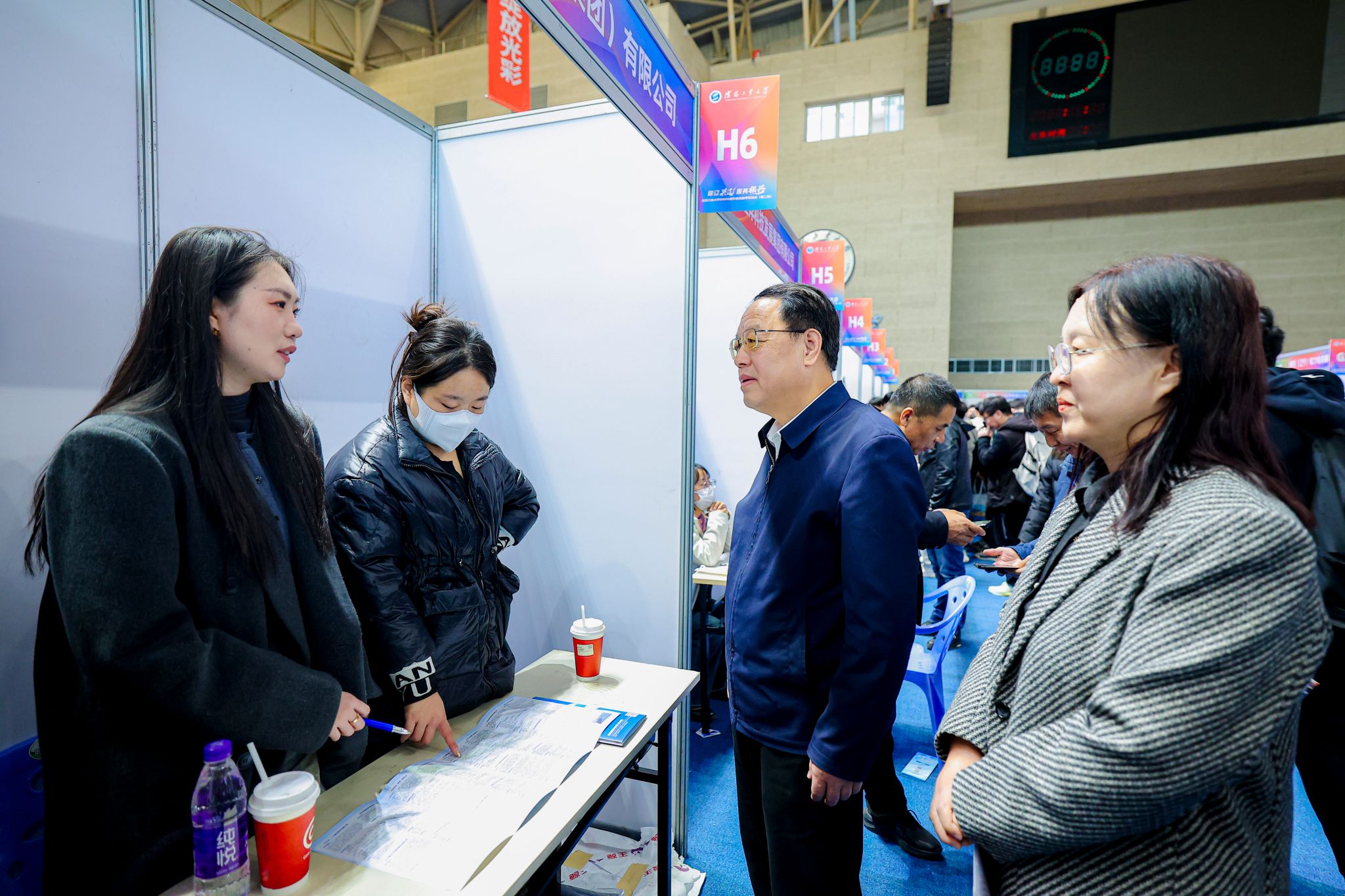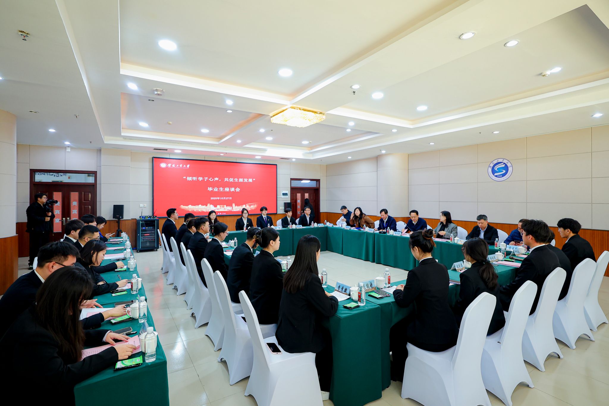 为深入贯彻落实省委关于高等教育服务振兴发展的部署要求,全力推动毕业生留辽兴辽工作,10月27日,学校在中央校区体育馆举办“留辽兴辽 服务振兴”2026届毕业生秋季双选会,期间组织召开了用人单位代表与毕业生代表两场座谈会,广泛听取企业意见建议,深入了解学生就业诉求,多措并举促进毕业生更加充分、更高质量就业。党委书记贾玉明、党委副书记柯丽出席活动,党政办公室、研究生院、教务处、学生处、招生就业处负责同志参加座谈。
