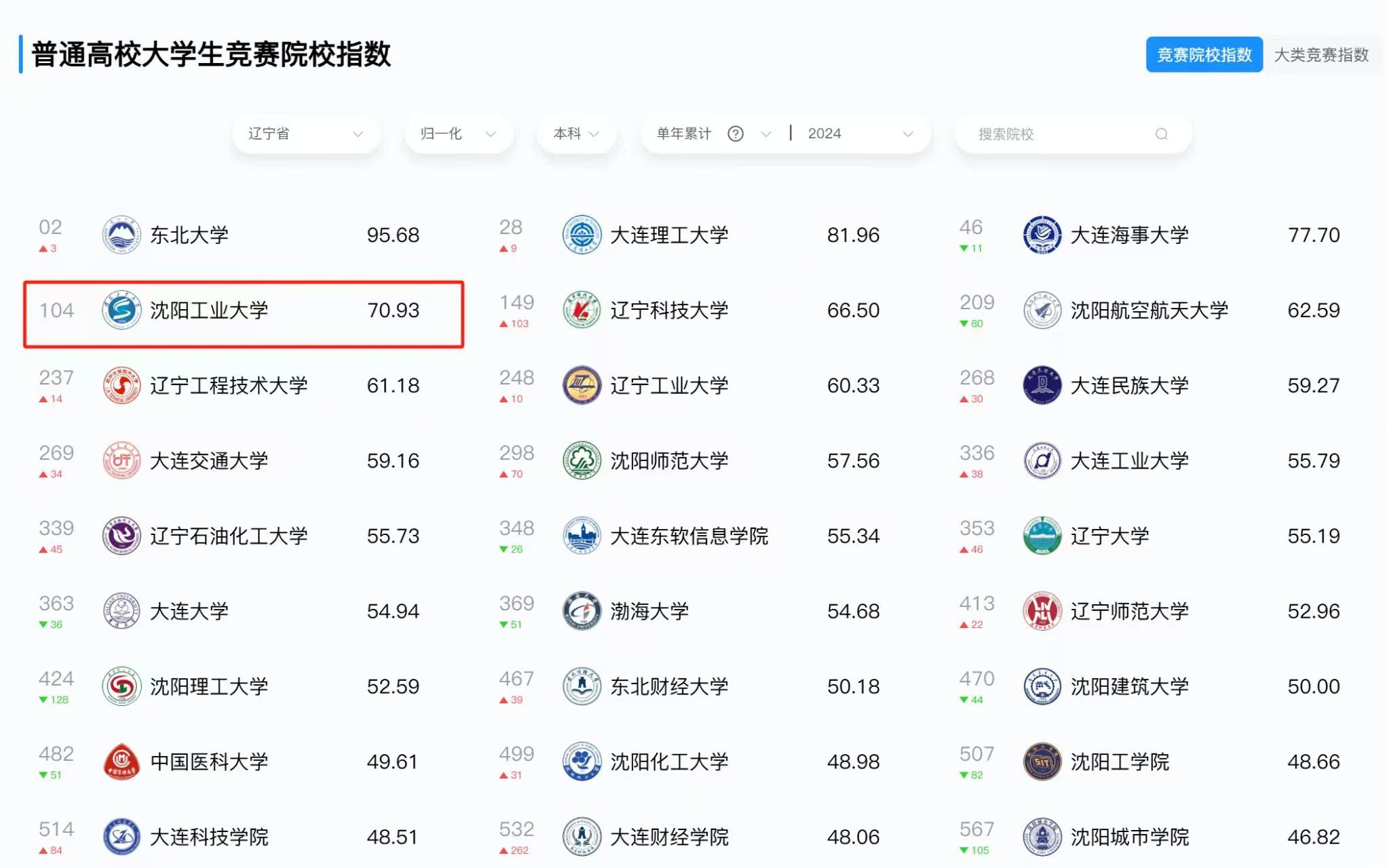 我校在“2024年度全国普通高校大学生竞赛院校指数”榜单中位列104名