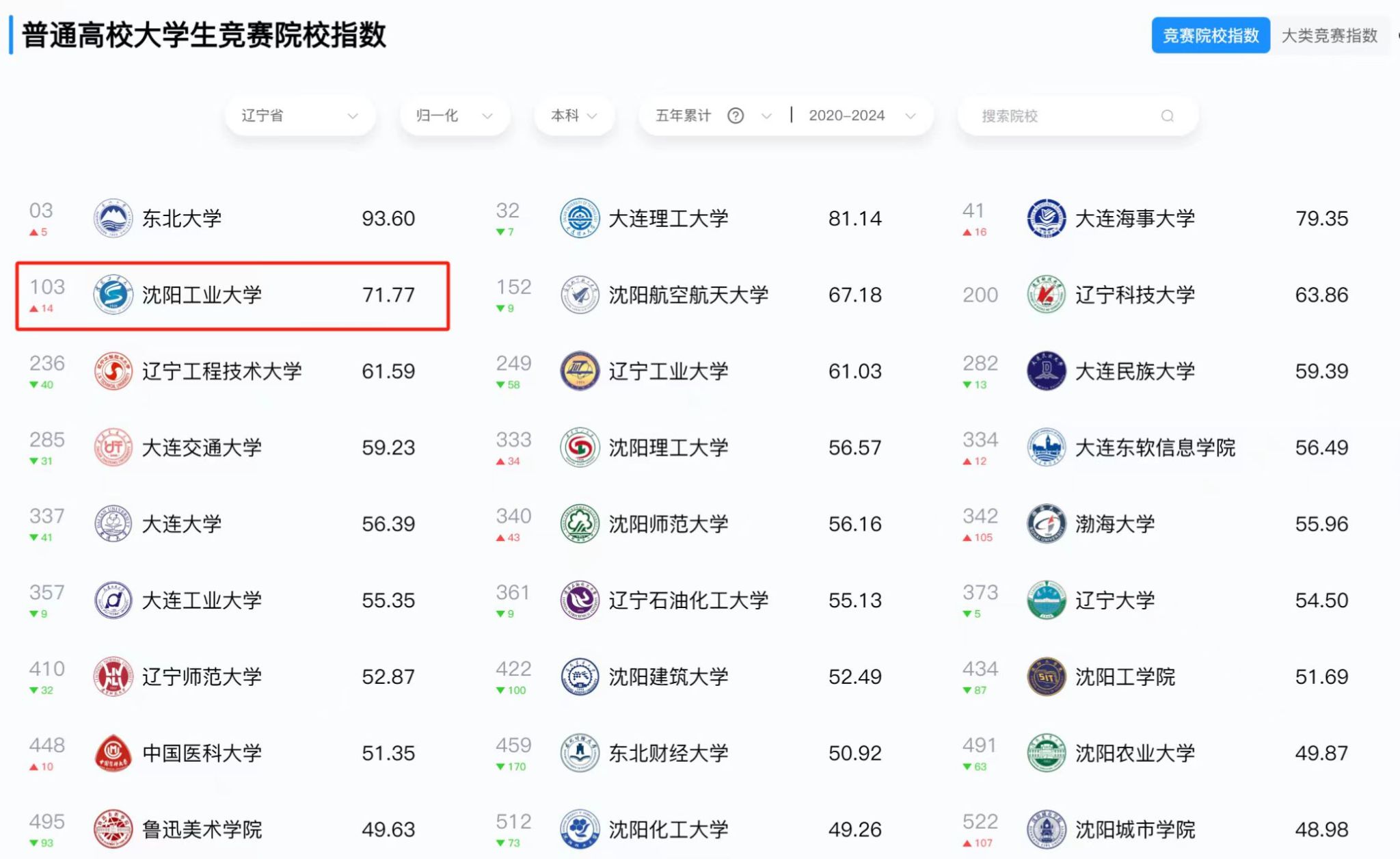 我校在“全国普通高校大学生竞赛院校指数”(2020-2024)榜单中位列103名